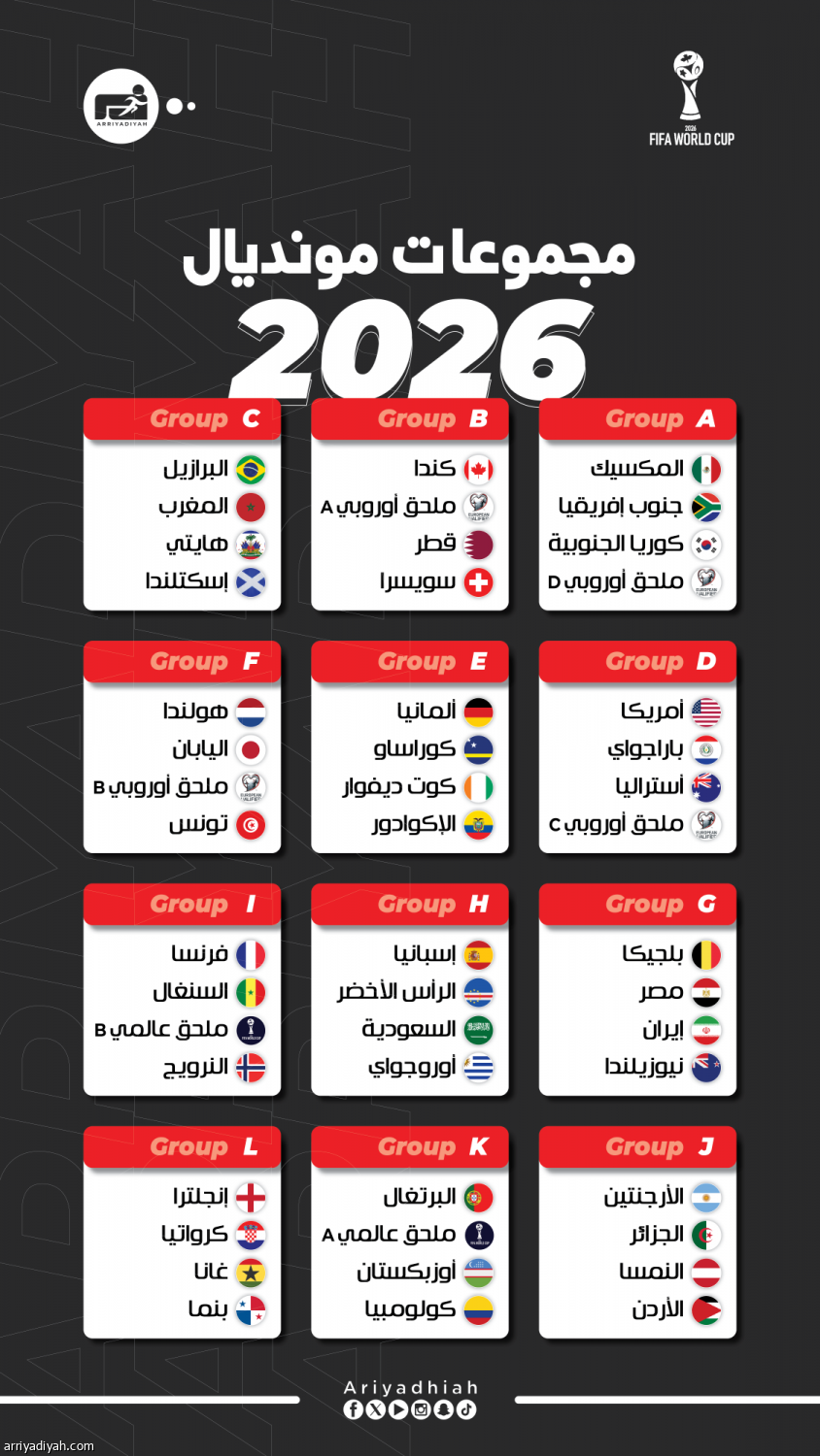 قرعة المونديال.. الأرجنتين أمام الأردن والجزائر.. والبرازيل تواجه المغرب